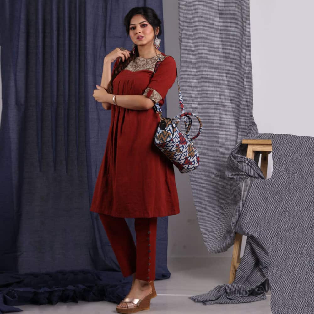 Natural dyers are coaxing a beautiful green out of raw Pomegranate rinds, using sawdust from the Jackfruit tree for making a delicate yellow, extracting grey or Kashish from shells and the Arjun tree bark and employing the kitchen staple, the onion, to give off a range of earthy browns and reds.