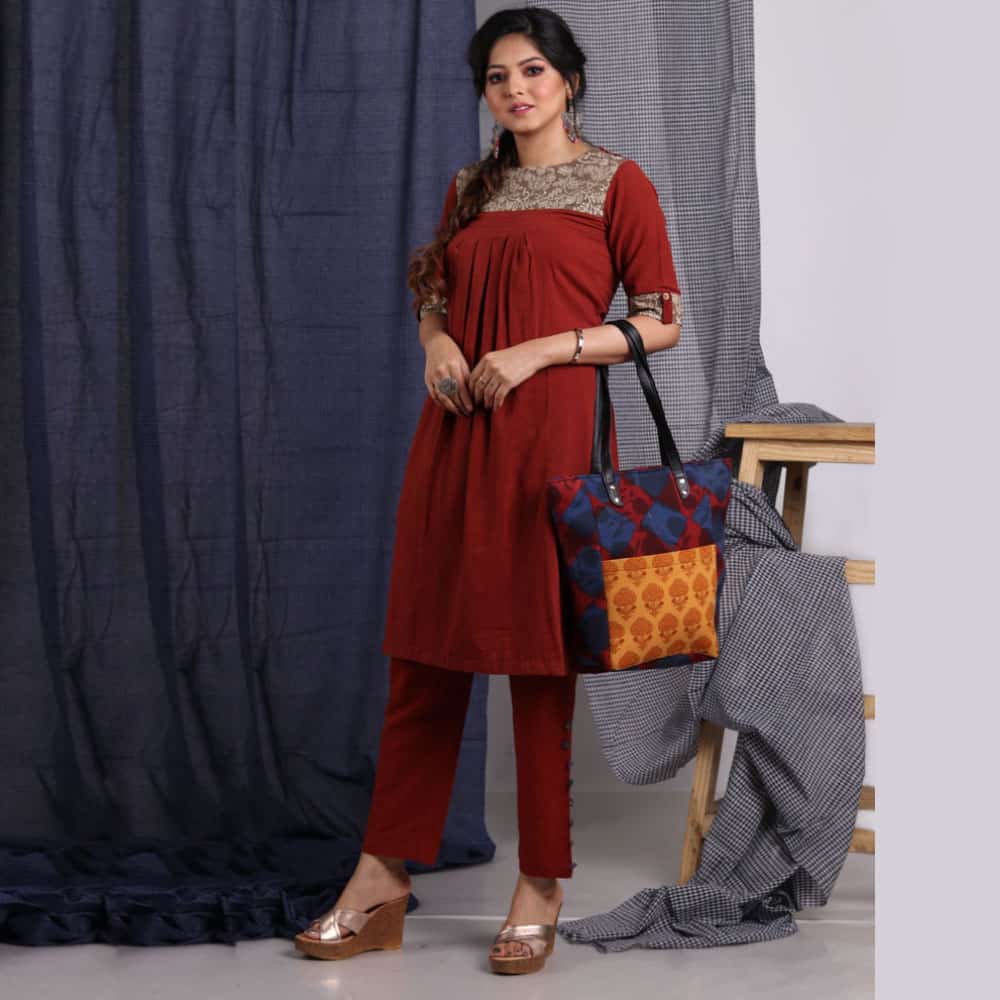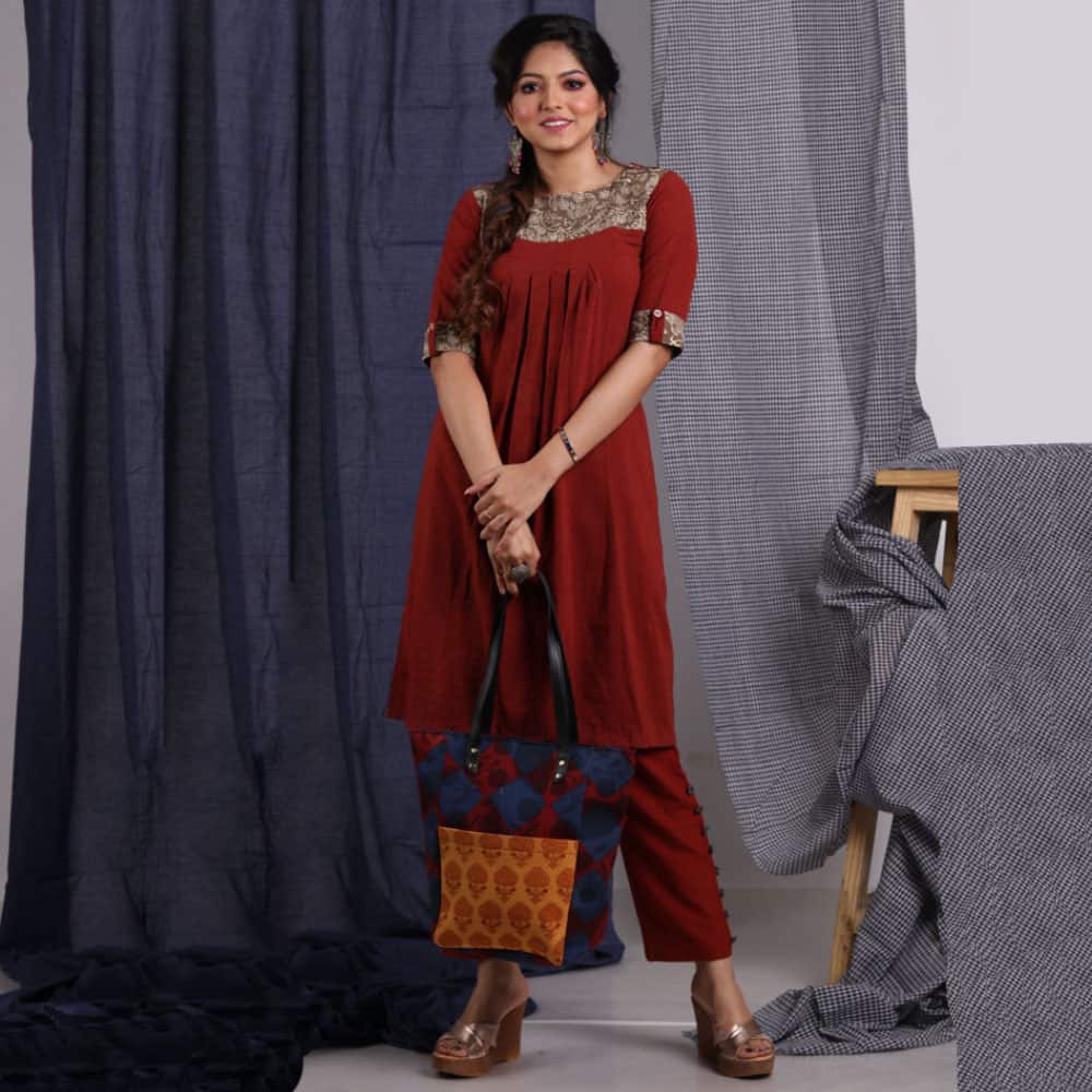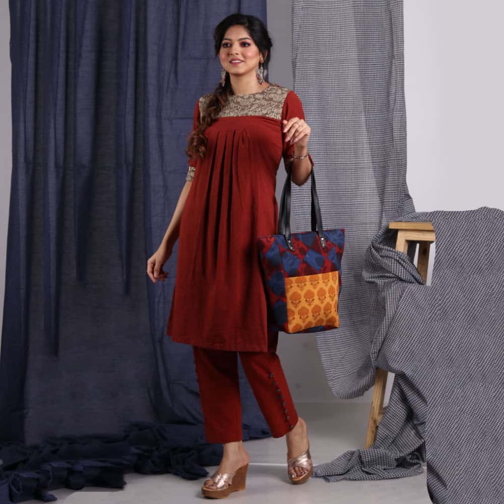 Natural dyers are coaxing a beautiful green out of raw Pomegranate rinds, using sawdust from the Jackfruit tree for making a delicate yellow, extracting grey or Kashish from shells and the Arjun tree bark and employing the kitchen staple, the onion, to give off a range of earthy browns and reds.