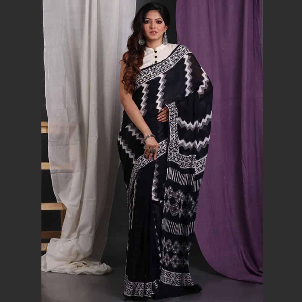 MEASUREMENTS – Saree: Length – 5.50-mtr, Width – 48in, Blouse: Length – 35.5in, Width – 48in