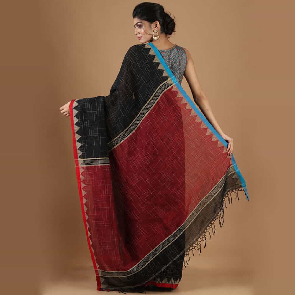 Tie & Dye Temple Work Linen Saree